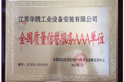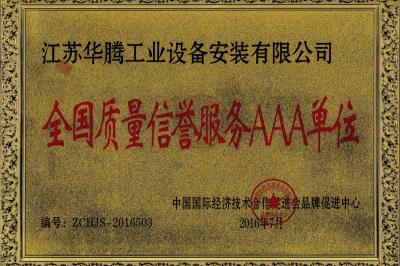 2016工程设备公司全国质量信誉服务AAA单位