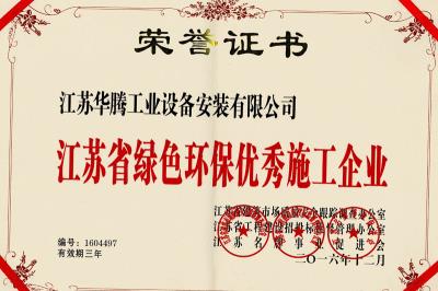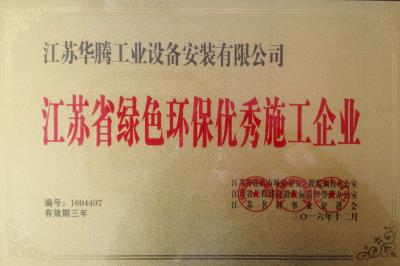 2016工业设备公司江苏省绿色环保优秀施工企业